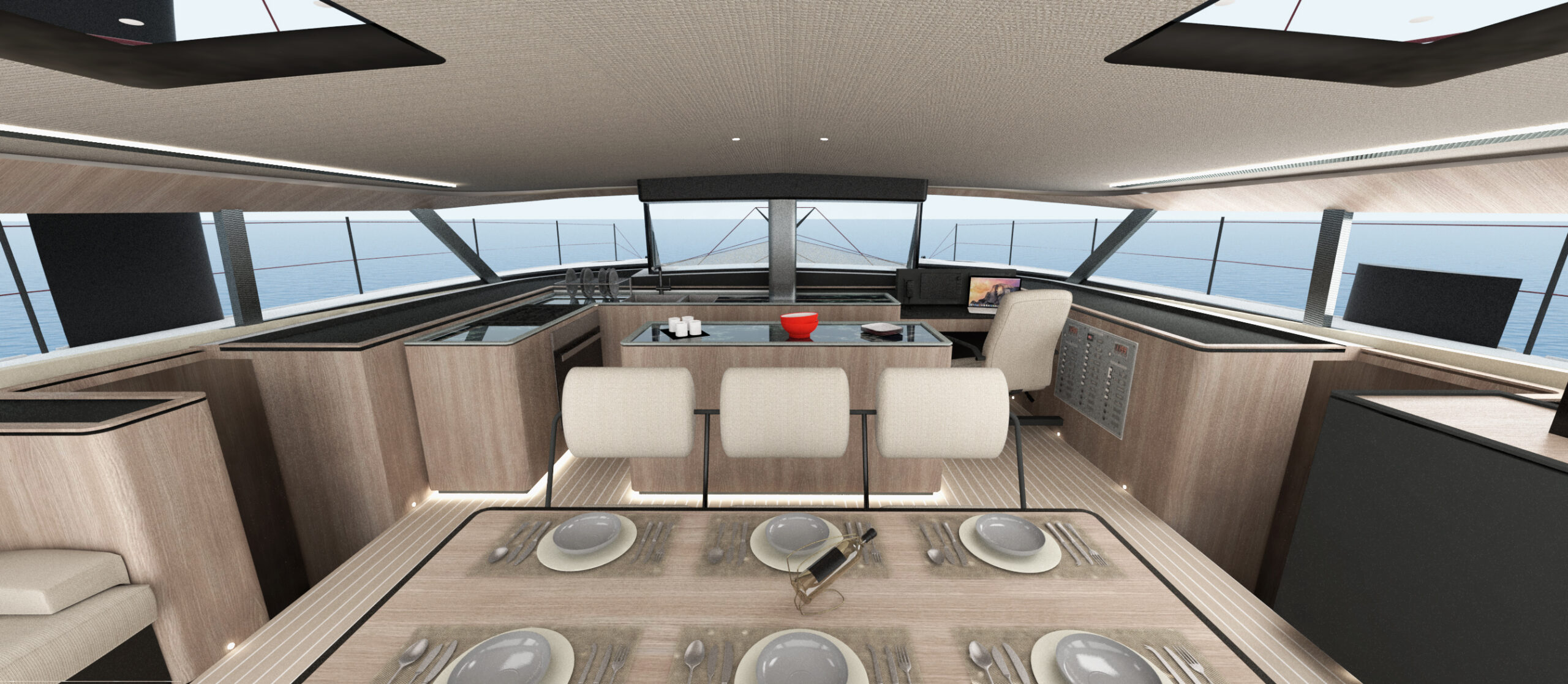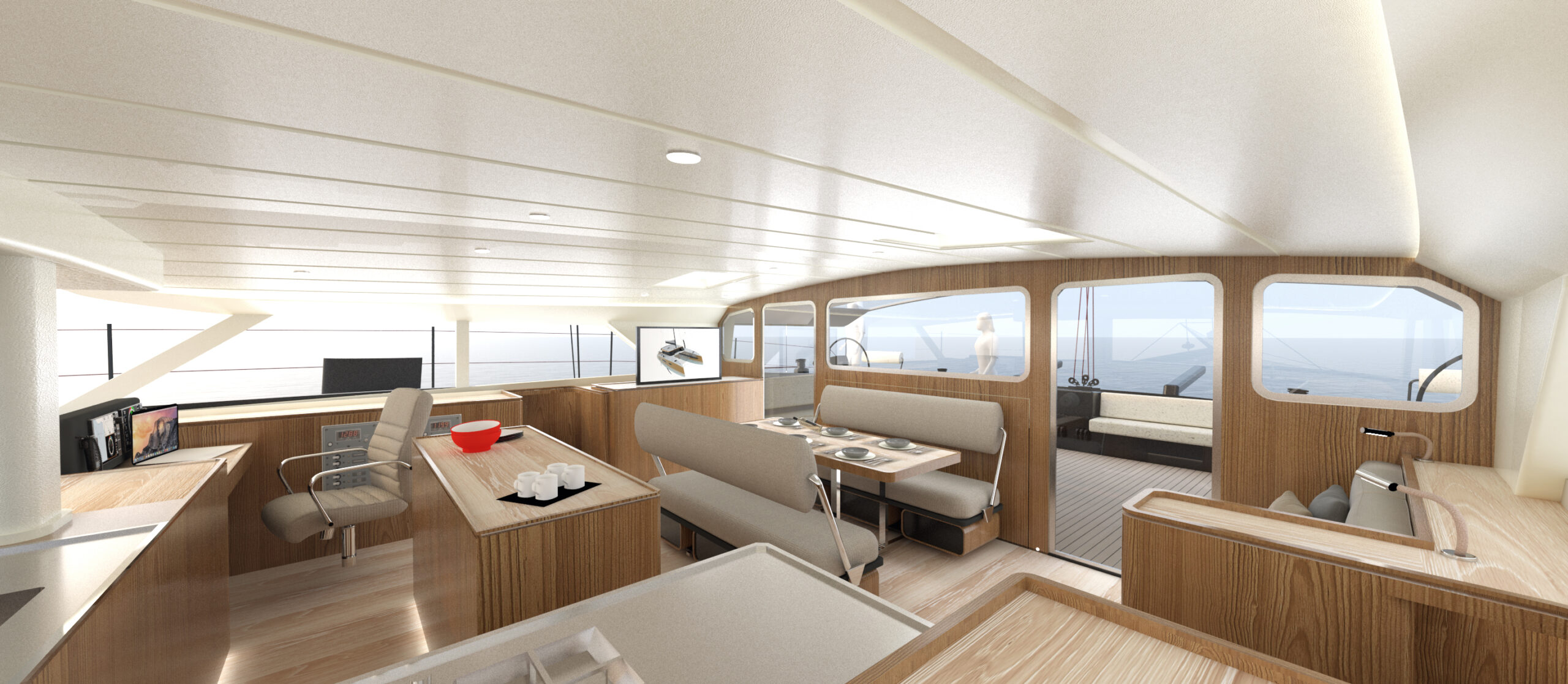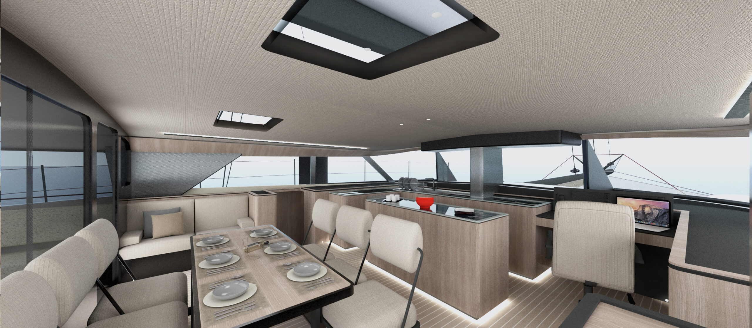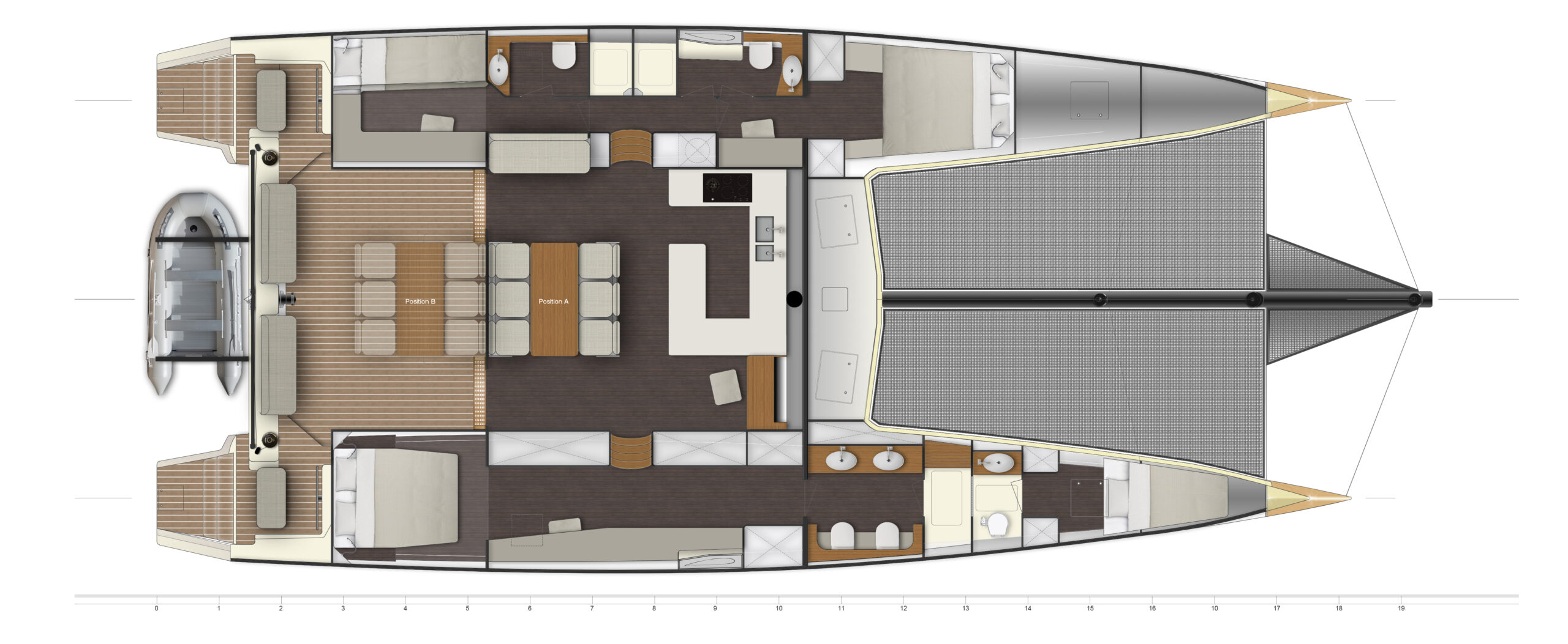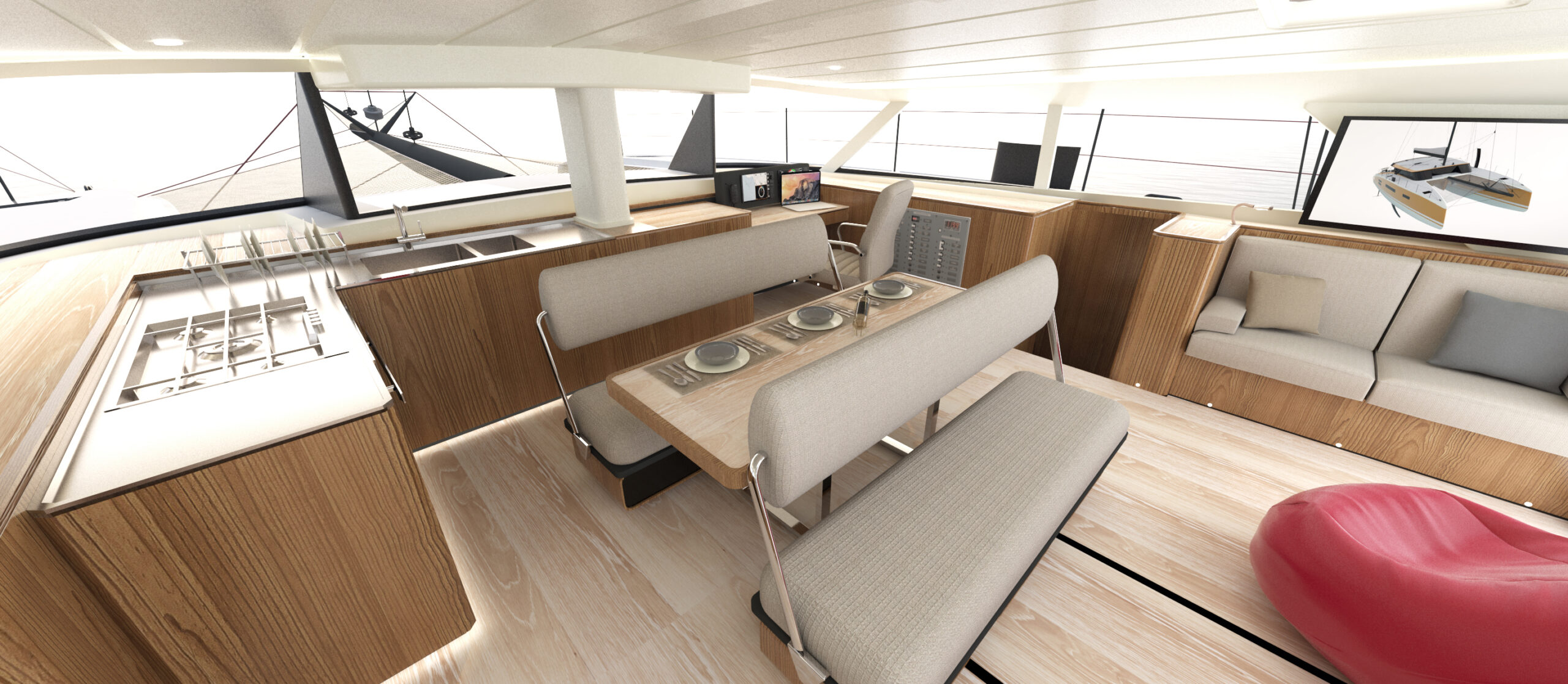 Un catamarano da crociera di lusso ad alte prestazioni molto veloce e navigabile in grado di sopportare il peso extra dell’attrezzatura da crociera e il comfort, come fanno i moderni maxi-yacht. I multiscafi “fanno meglio” perché sono veloci e spaziosi, ma come tutti sappiamo il peso è la controparte, ma anche linee d’acqua, appendici, centri di progettazione, altezza del ponte, piano velico, concentrazione dei pesi sono tutti punti determinanti.